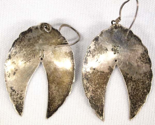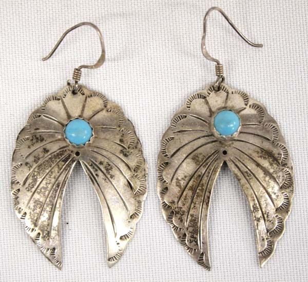 Native American Navajo Sterling Turquoise Earrings by Desert Rose Trading, measure 2 1/8''H x 1 1/8''W