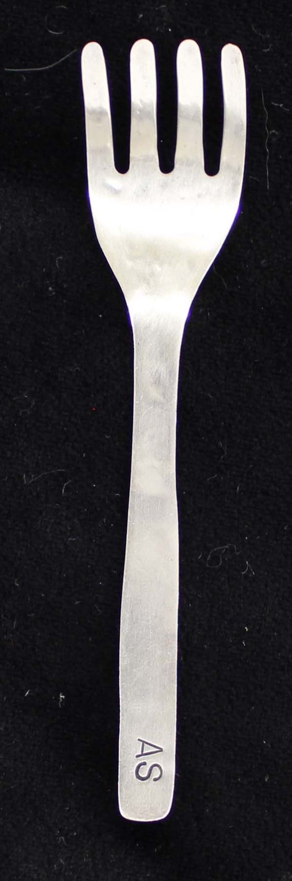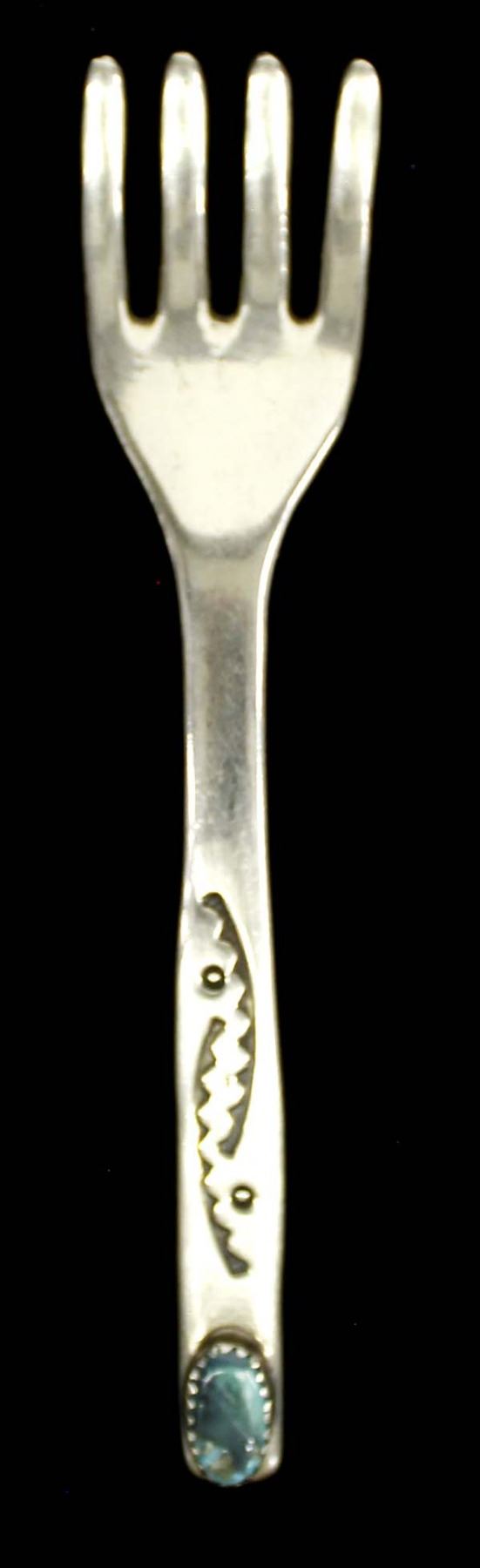 Native American Navajo Sterling Turquoise Child's Fork by Anthony Skeets, measures 1'' x 4.5''L, hallmarked AS, hand stamped details