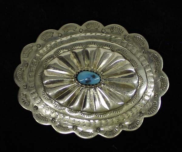 Native American Navajo Sterling Turquoise Concho Pin, measures 2.25'' x 1.5'', beautiful stamped details, 14.95g in total wt.