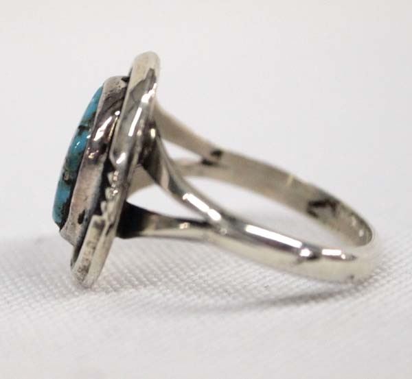 Native American Navajo Sterling Silver Turquoise Ring, Size 7, measures .5'' x .25''
