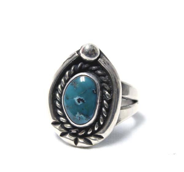 Native American Navajo Sterling Silver Turquoise Ring, Size 4