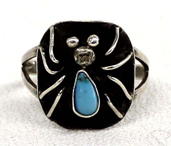 Native American Navajo Sterling Turquoise Spider Ring, size 7.5 and measures .75''L x .75''W, Looks great on!