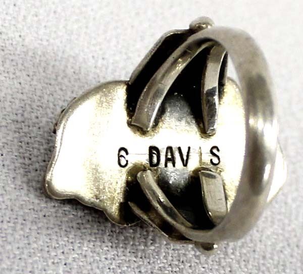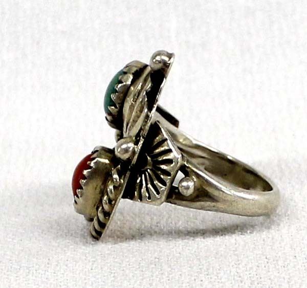 Native American Navajo Sterling Turquoise Coral Ring by C. Davis, size 5.5, measures 1''L x 7/8''W