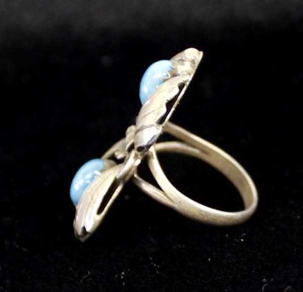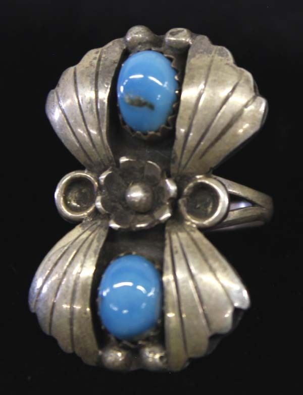 Native American Navajo Sterling Turquoise Ring, Size 5, beautiful turquoise, ring measures 1.25''L x .75''W, very flattering on