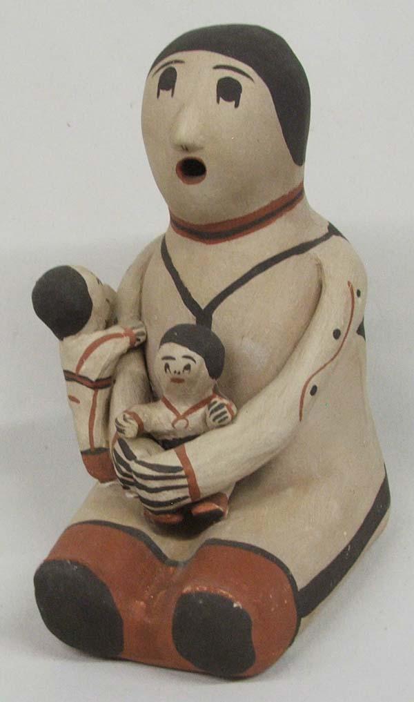 Native American Navajo Storyteller By R. Chacho. Measures approx. 6 1/2''H x 3''W x 5''D. Buyers Pay Actual Shipping and Handling Charges(see terms and conditions for more information).
