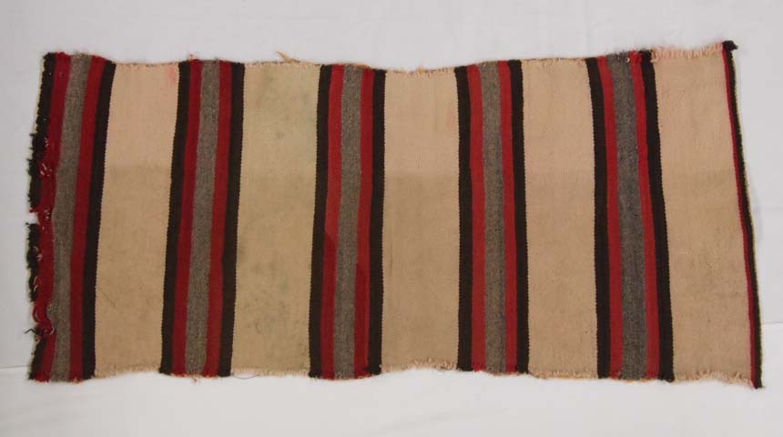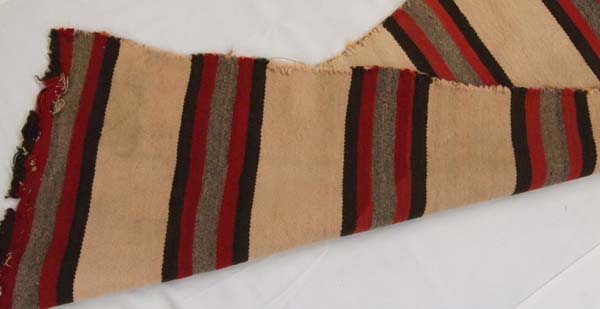 Native American Navajo striped design rug, 1930's. Measures 21''x48''. Selvage damage and some bleeding. Buyers pay actual shipping and handling charges (see terms and conditions for more information.)