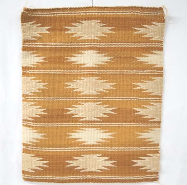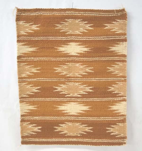 Native American Navajo Textile Rug, measures 21.5'' x 17'', 2'' selvage damage on one side, 4 cornered tassels intact however very short, beautiful colors