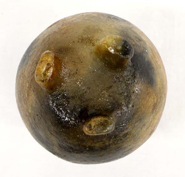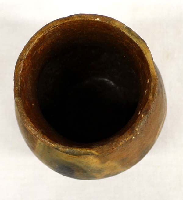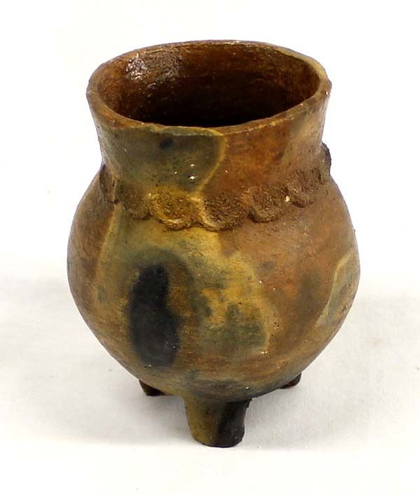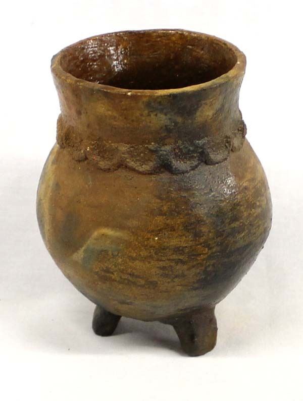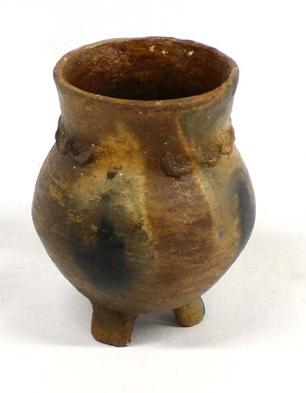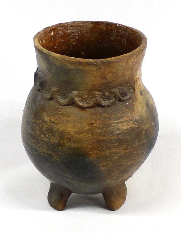 Native American Navajo Tripod Pottery Jar, measures 4.5'' x 5'', scalloped designs on the neck of the jar
