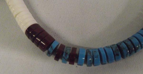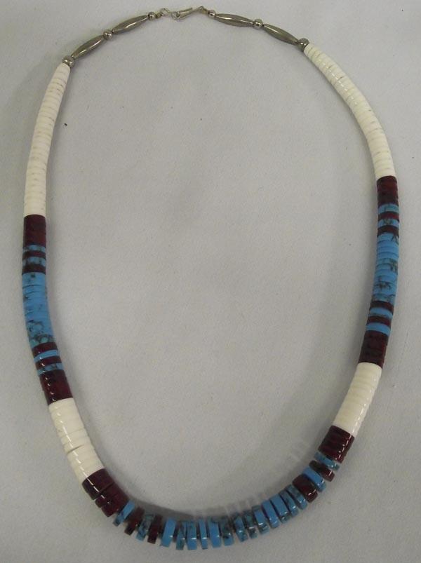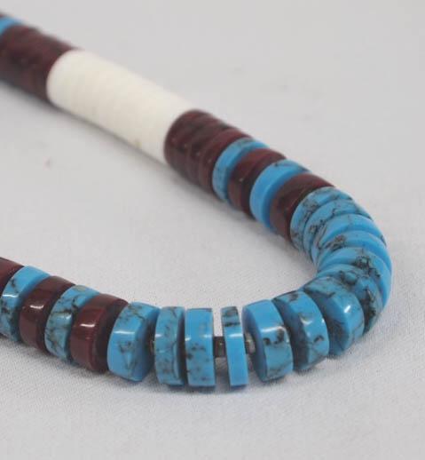 Native American Navajo Turquoise, Red & White Bead Necklace. String tied. Measures approx. 24'' long. Buyers Pay Actual Shipping and Handling Charges(see terms and conditions for more information).