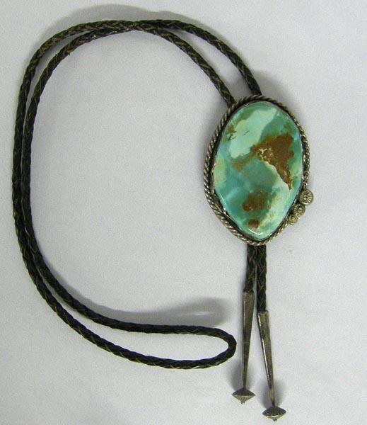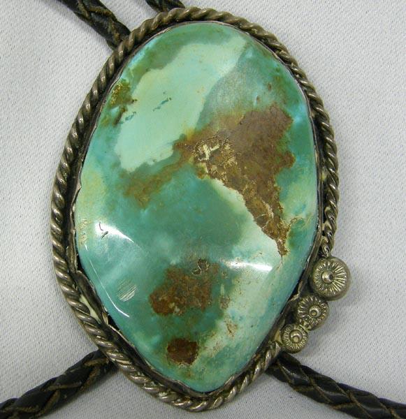 Native American Navajo Large Turquoise Bolo, measures approx. 3x2''. Buyers Pay Actual Shipping and Handling Charges(see terms and conditions for more information)