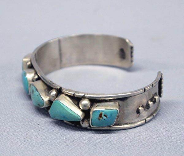 Native American Navajo Turquoise Bracelet Hallmarked. Hand scribed hallmark on inside ''Robbyn'' and stamped ''Sterling.'' Natural Carico Lake Turquoise. Buyers Pay Actual Shipping and Handling Charges(see terms and conditions for more information).