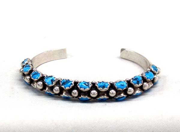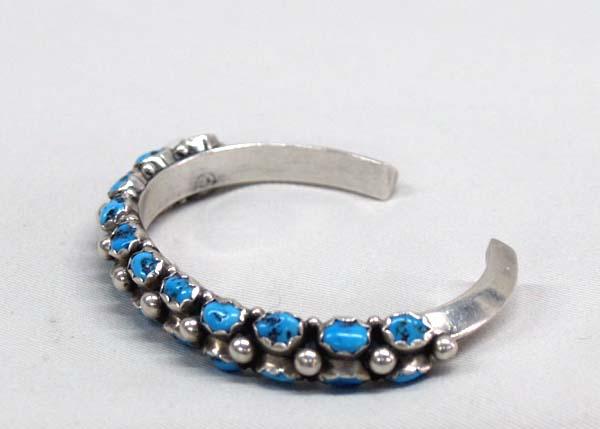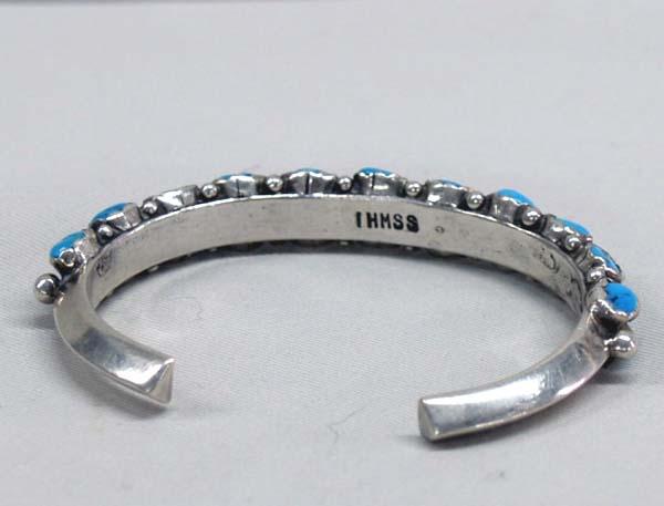 Native American Navajo Heavy Silver Turquoise Bracelet, letters IHMSS stamped inside of bracelet, 22 turquoise nugget stones, inside measures approx. 6 1/8'' and 3/8''W, stone measures .25'' x .25''. Buyers Pay Actual Shipping and Handling Charges(see terms and conditions for more information)