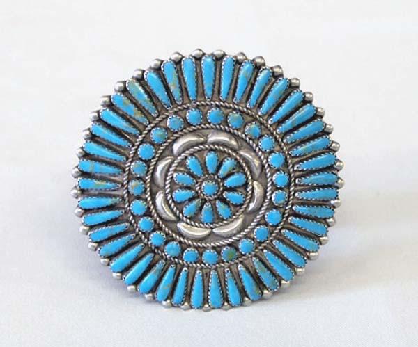 Native American Navajo Turquoise Cluster Pin/Pendant, 75 turquoise stones with largest measuring approx. .5'' x 1/8'', 3''Diameter. Buyers Pay Actual Shipping and Handling Charges(see terms and conditions for more information)