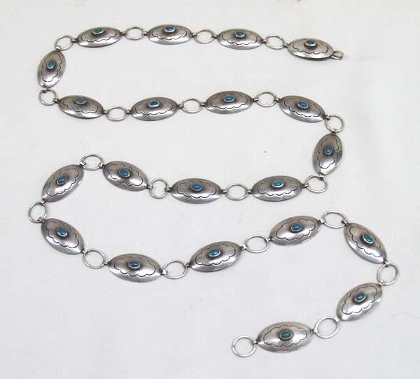 Native American Navajo Silver Turquoise Concho Belt by Roy Vanderver, signed ''The Best by Roy Vandever'', measures approx. 40''L x and conchos measure 1.25'' x 5/8''. Buyers Pay Actual Shipping and Handling Charges(see terms and conditions for more information)