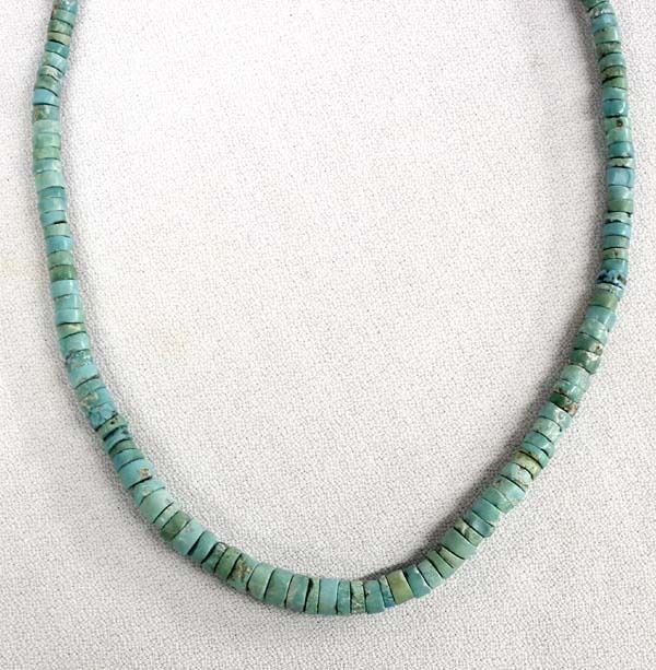 Native American Navajo Turquoise Heishi Necklace, measures 20''L end to end, handmade clasp, beads measure .25''D