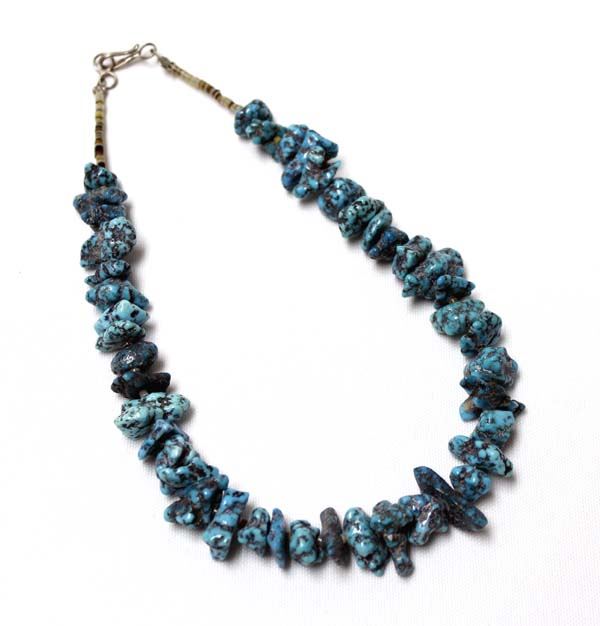 Native American Navajo Turquoise Nugget Choker, measures 13'' end to end, shell heishi, nuggets range in size from .5'' to 1''