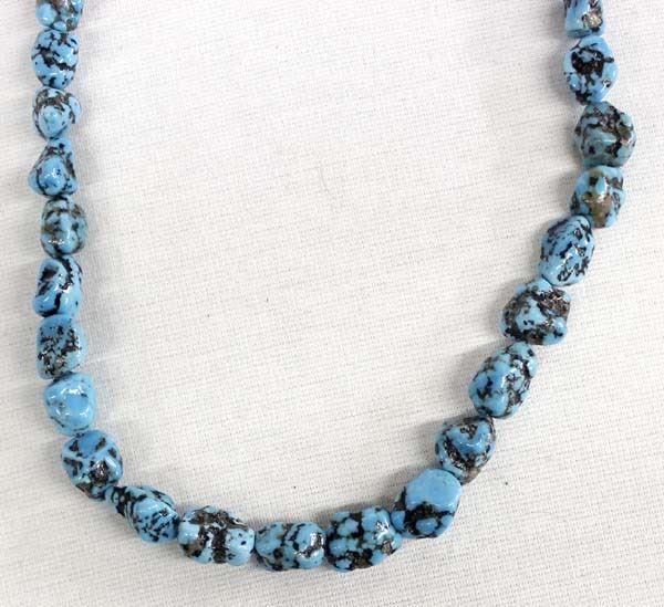 Native American Navajo Morenci Turquoise Nugget Necklace, measures 22''L end to end, sterling clasp and findings, approximately 390.5 total carat weight, beautiful colors