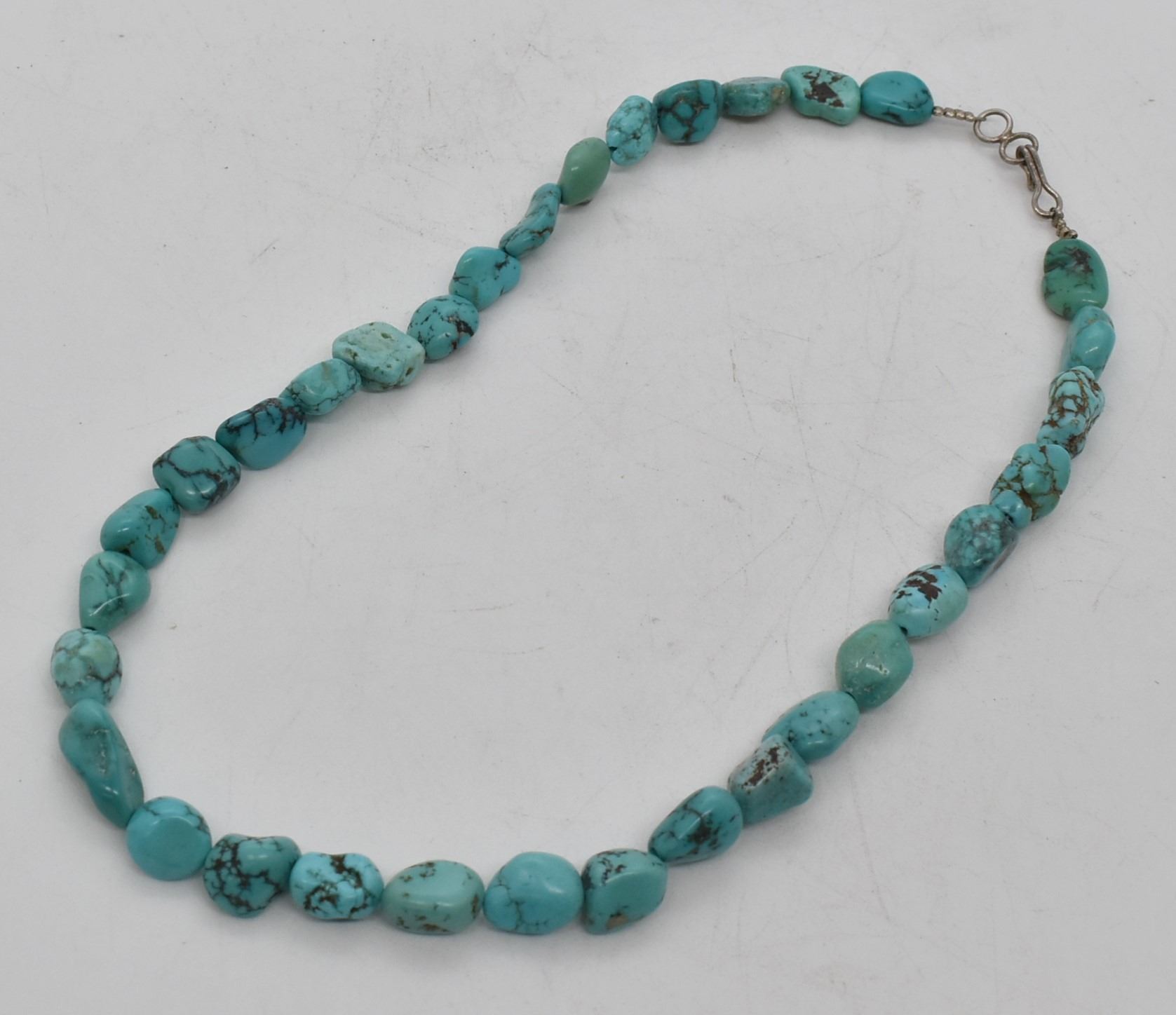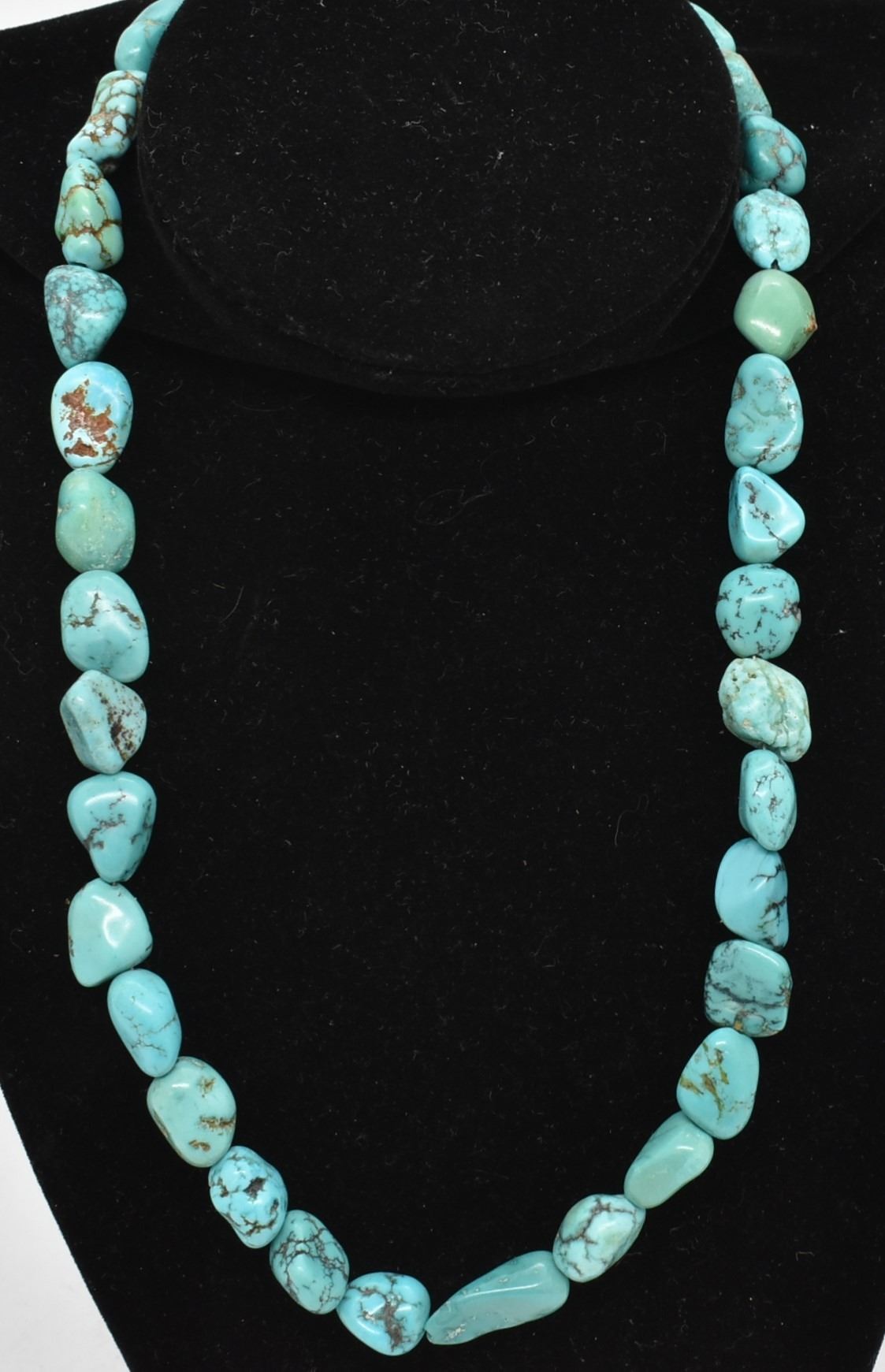 Native American Navajo Turquoise Nugget Necklace, measures 16''L end to end