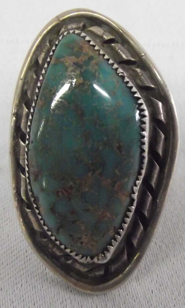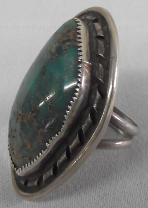 Native American Navajo Cerrillos Natural Turquoise Ring Size 6 1/2. Measures approx. 1 1/2''L x 1''W, stone measures approx. 1 1/4''L x 1/2''W. Buyers Pay Actual Shipping and Handling Charges(see terms and conditions for more information).