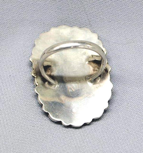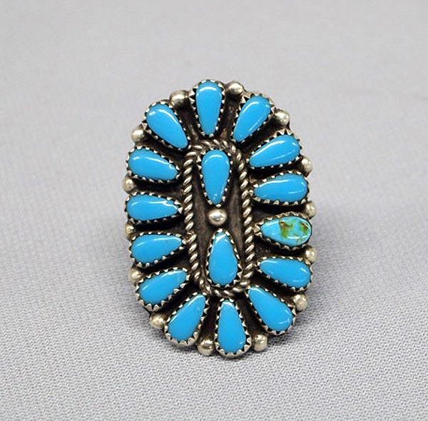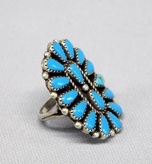 Native American Navajo Turquoise Ring Hallmark RT. Stamped Sterling on inside and stamped ''RT.'' Size 9 and cluster measures 1.5''x1''. Buyers Pay Actual Shipping and Handling Charges(see terms and conditions for more information).