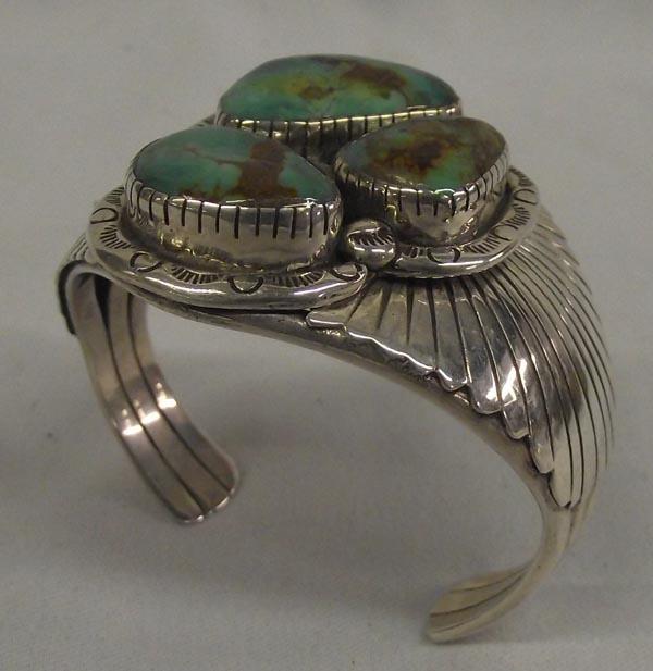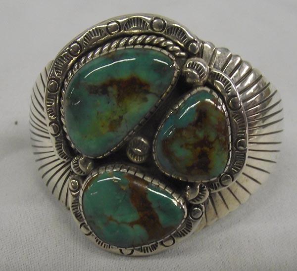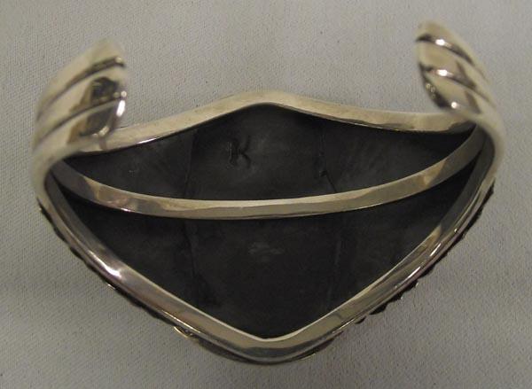 Native American Navajo Turquoise Silver Bracelet, hallmarked ''K''. Measurement in Inches - Inside Length(Including Opening) 6 1/2'' x 2'' Width. Buyers Pay Actual Shipping and Handling Charges(see terms and conditions for more information).