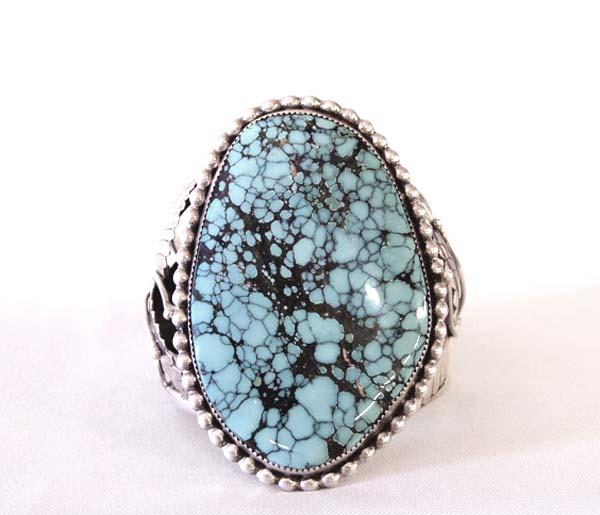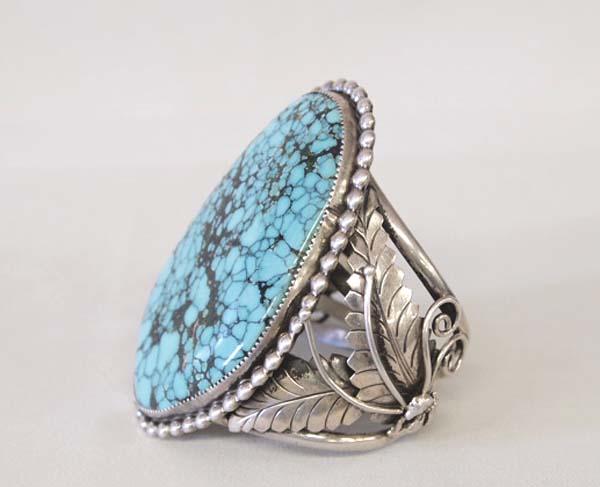 Native American Navajo Turquoise Silver Bracelet, stamped sterling, stone measures approx. 3'' x 2'', inside measures approx. 6.5'' and 3.5''W. Buyers Pay Actual Shipping and Handling Charges(see terms and conditions for more information)