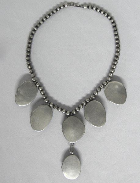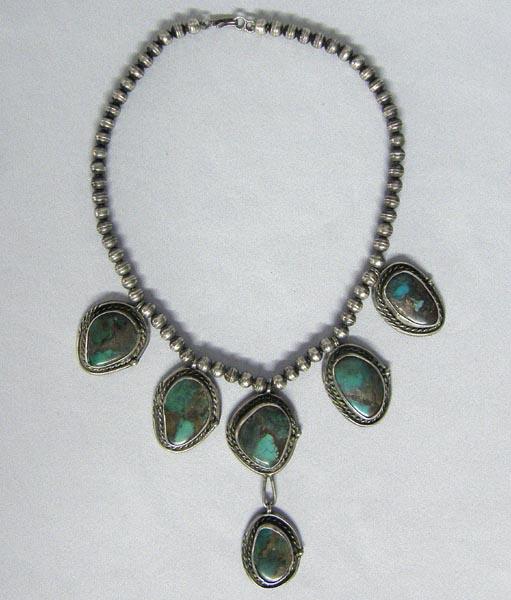 Native American Navajo Bisbee Turquoise Silver Choker. Hand tooled beads. Pendant is 3.25''H x 1.25''W. 15'' end to end. Buyers Pay Actual Shipping and Handling Charges(see terms and conditions for more information).
