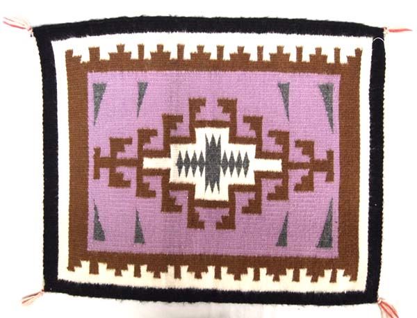 Native American Navajo Two Grey Hills Textile Rug, measures 23'' x 18'', tight weave, gorgeous colors, 4 cornered tassels intact