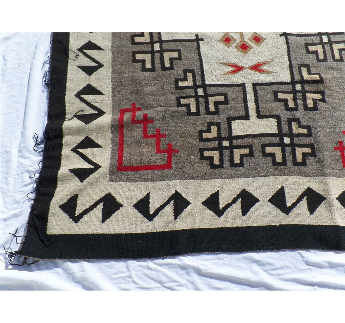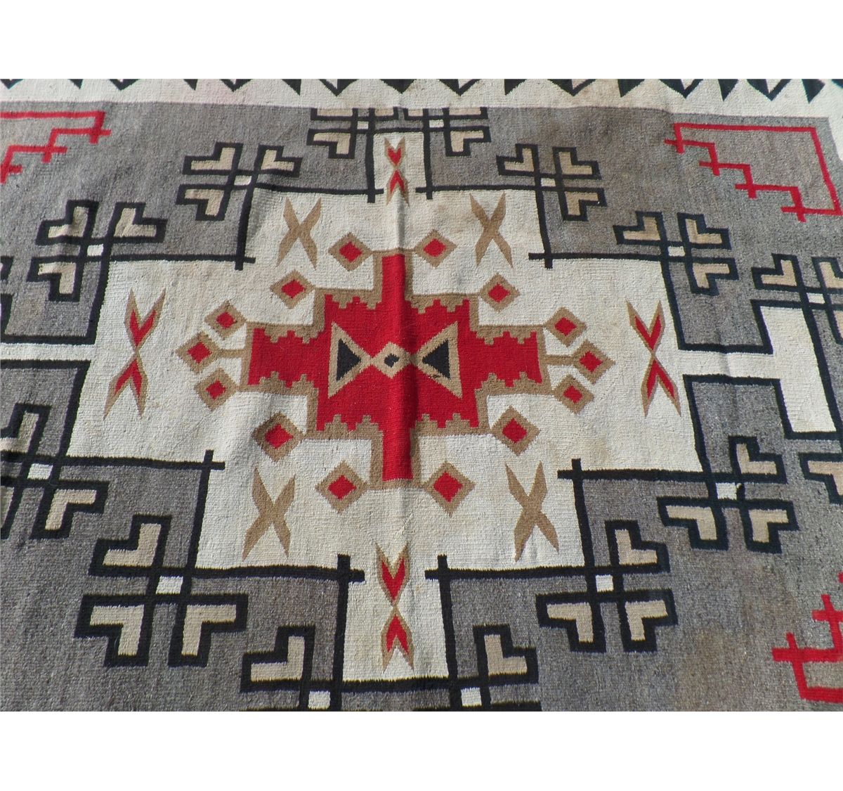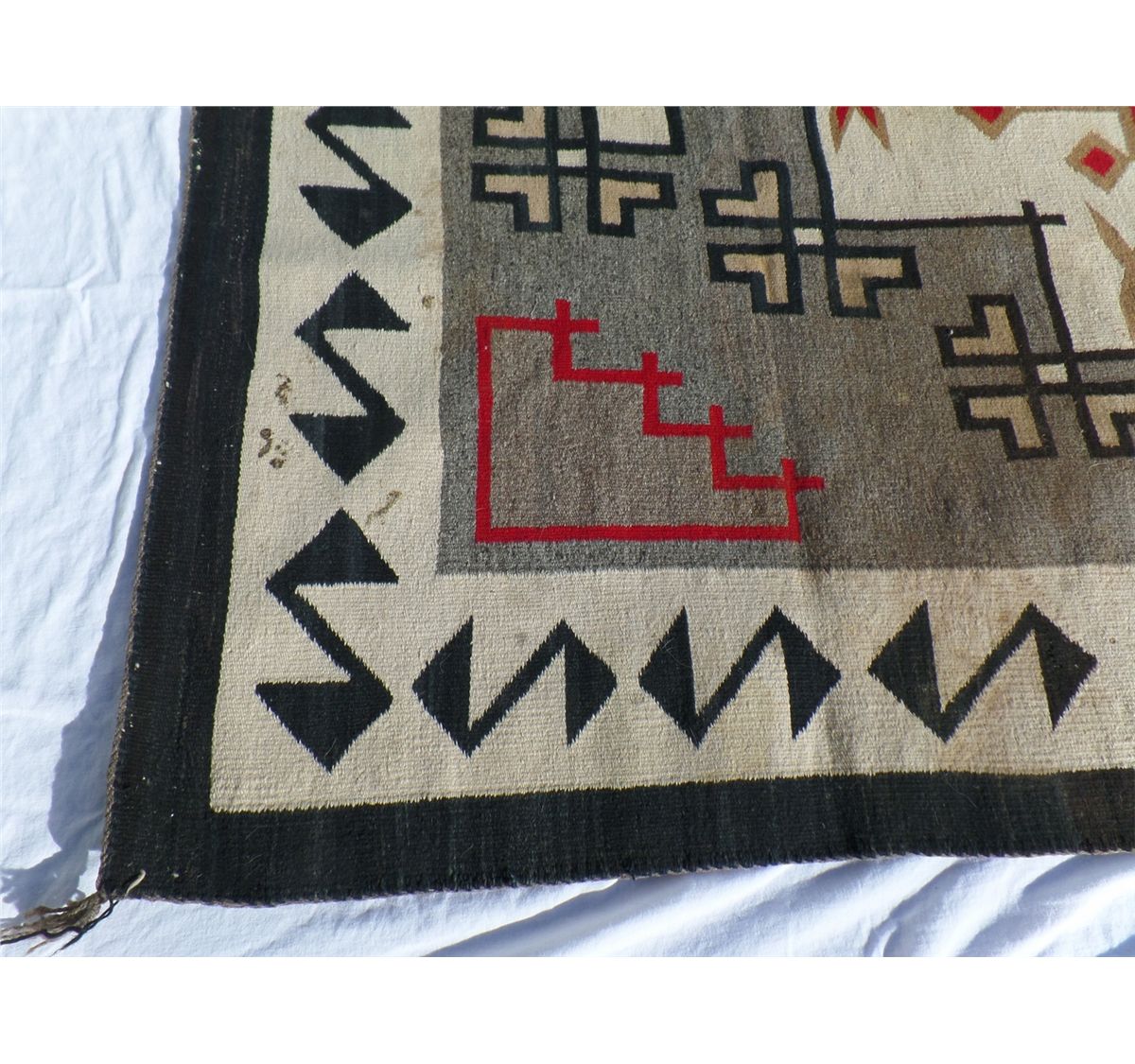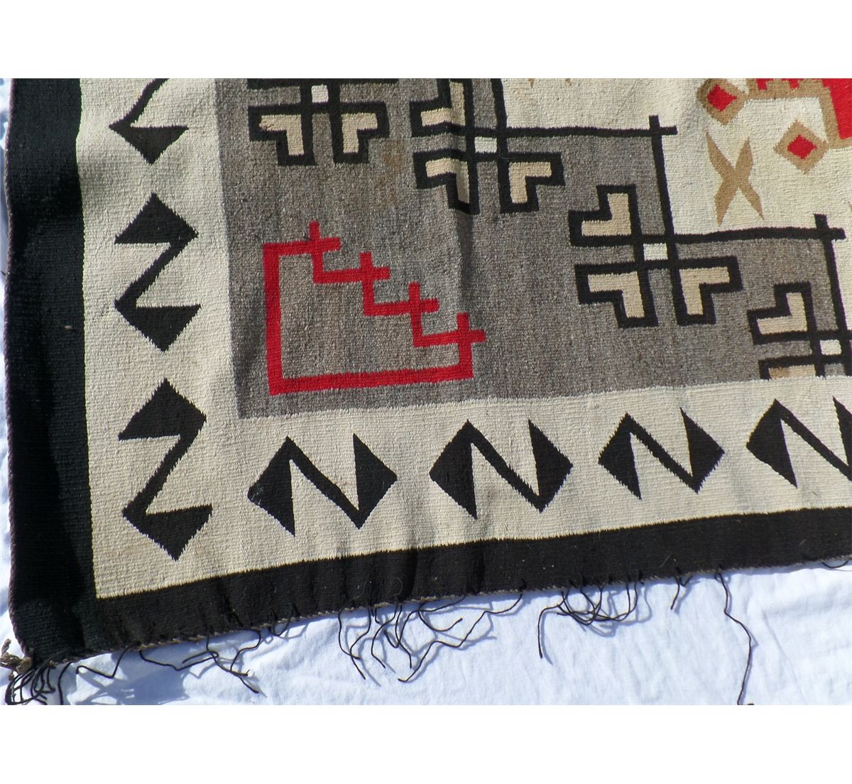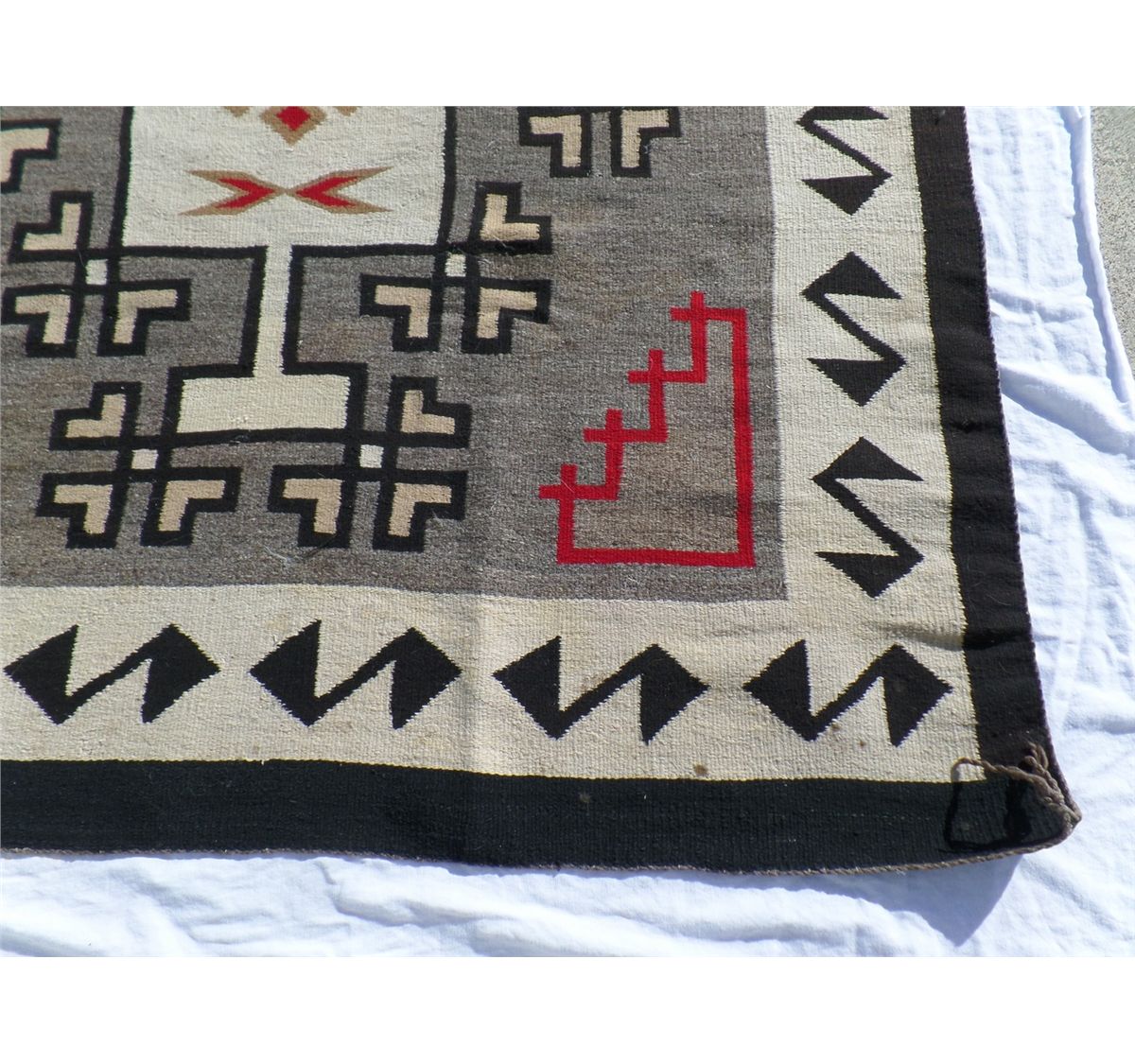 Native American Navajo Weaving measures 52.5" wide by 77.5" tall. Condition: Good w/some staining. Shipping: $30.