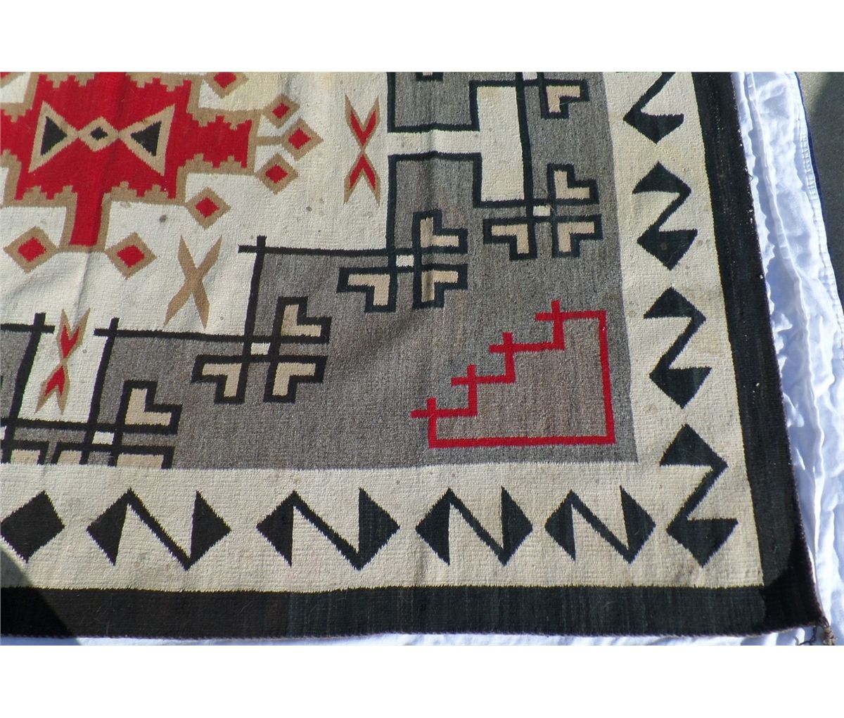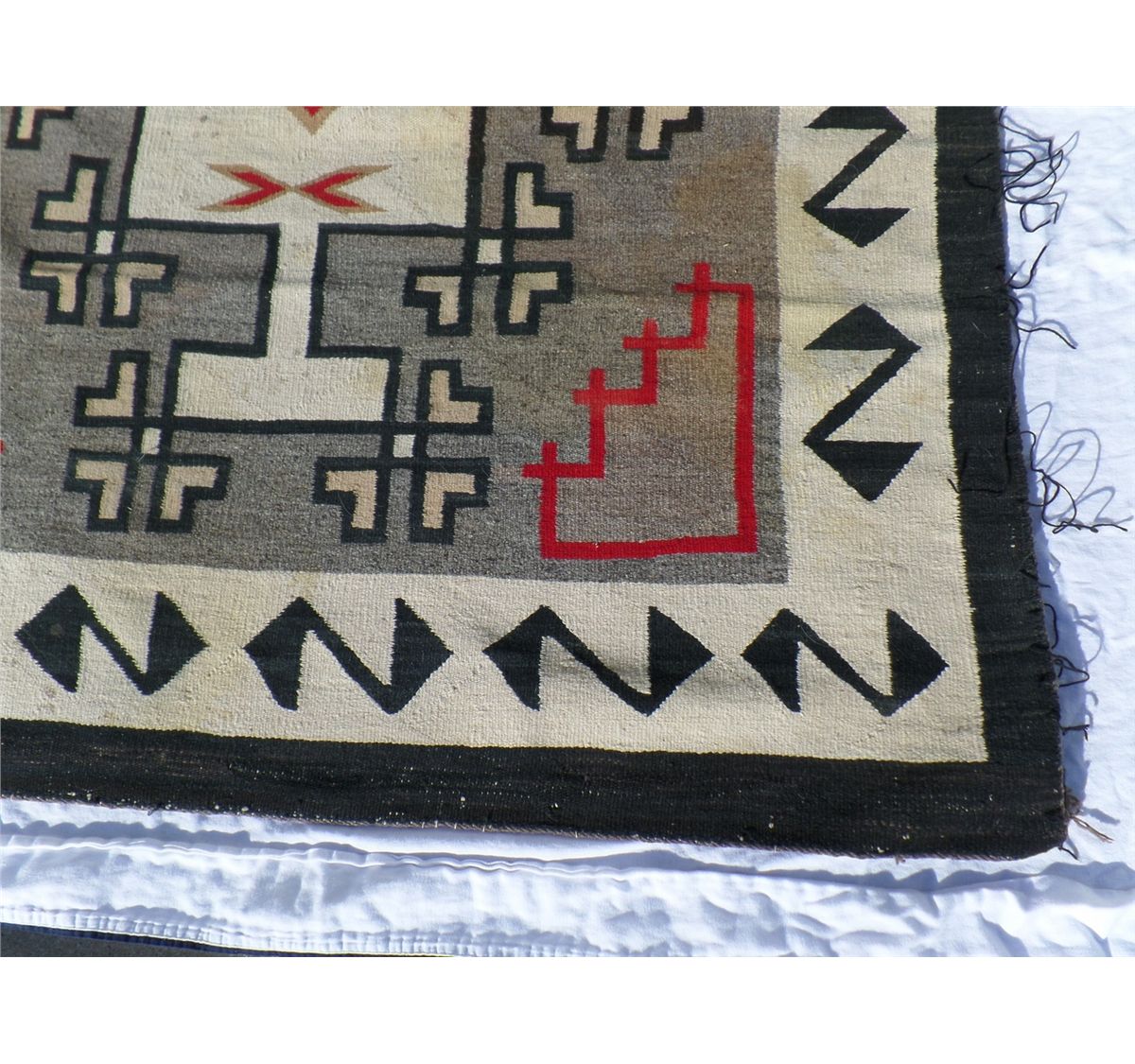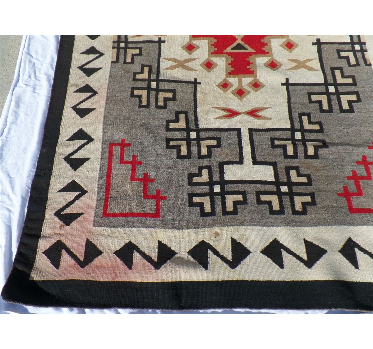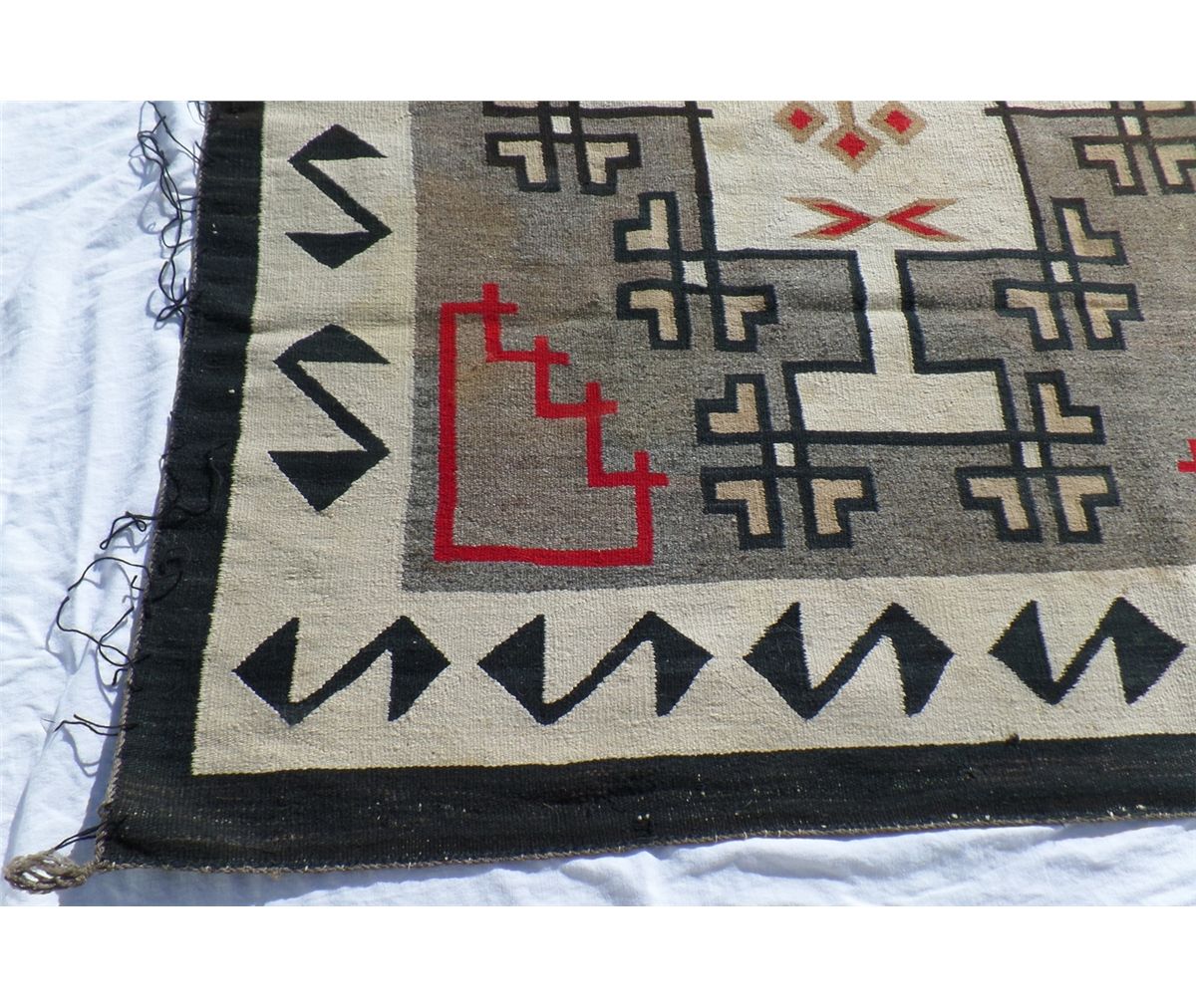 Native American Navajo Weaving measures 52.5" wide by 77.5" tall. Condition: Good w/some staining. Shipping: $30.