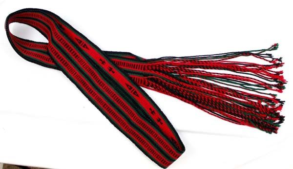 Native American Navajo Wool Dance Sash, measures 104''L end to end x 3''W, like new