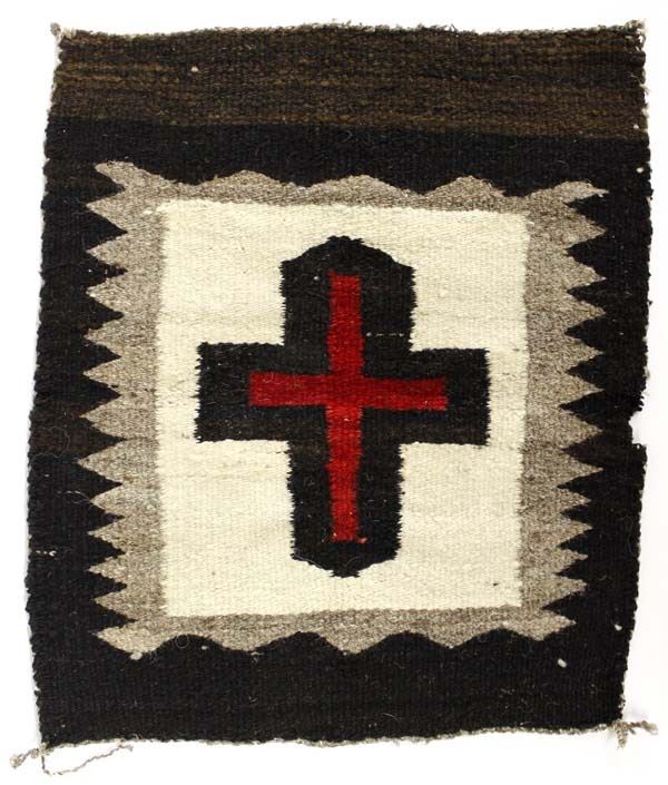 Vintage Native American Navajo Wool Textile Rug, measures 16'' x 19'', 4 cornered (very short) tassels intact, very small hole on one end (actually looks like a nail hole), selvage damage on one side