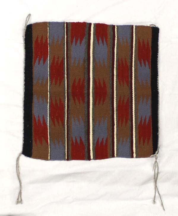 Native American Navajo Wool Textile Rug by Isabelle Leonard of Chinle, Arizona, measures 20.5'' x 20.5'', beautiful colors in a serrated diamond pattern, 4 cornered tassels intact