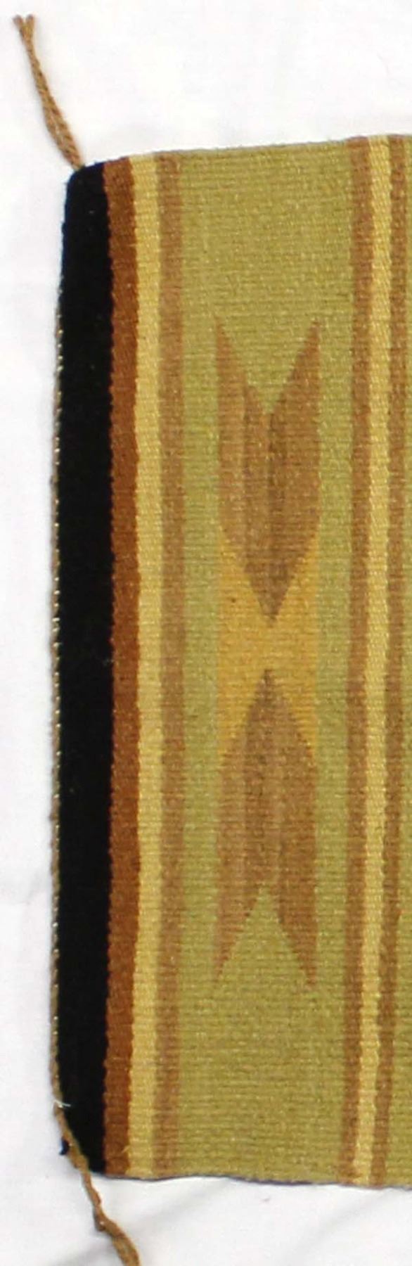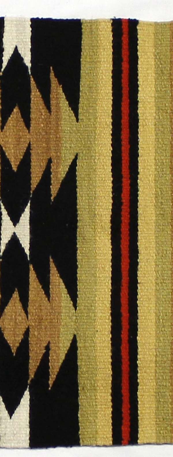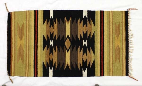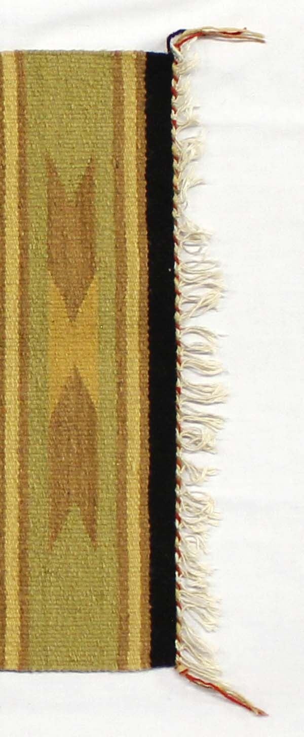 Vintage Native American Navajo Wool Throw, 2'' fringe on one end, very unusual mustard and green colors, serrated diamonds, measures 21'' x 38'', tassels are intact, good condition, tightly woven, ca. 1940s-1950s
