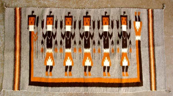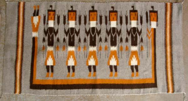 Native American Navajo Yei Rug, Rainbow God, slight damage to border stitching, made by Nellie Weaneka, measures approx. 57'' x 29.5''. Buyers Pay Actual Shipping and Handling Charges(see terms and conditions for more information)