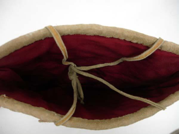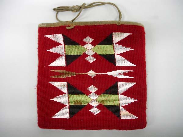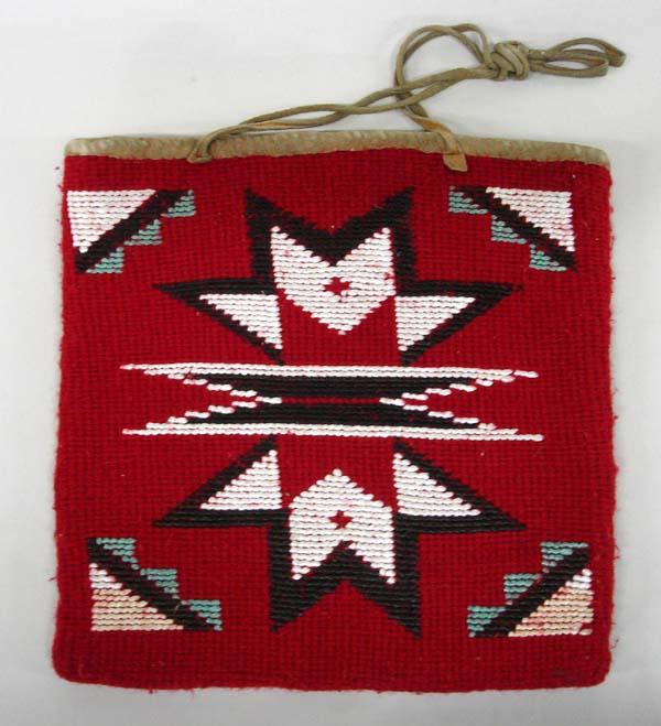 Native American Nez Perce Woven Flat Bag. Has leather trim on opening and fabric lining inside. Measures 10''x9''. Buyers Pay Actual Shipping and Handling Charges(see terms and conditions for more information).
