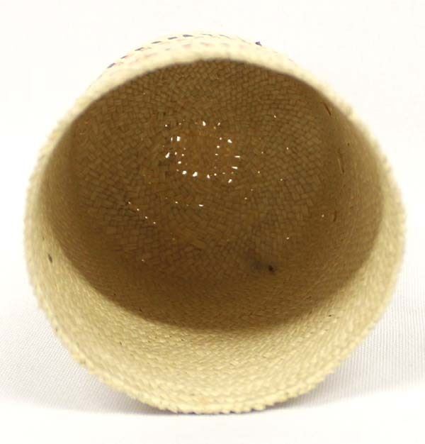 Native American Northwest Coast Basket, 3-tone pink, gray, & ecru, measures 2.5'' x 3''