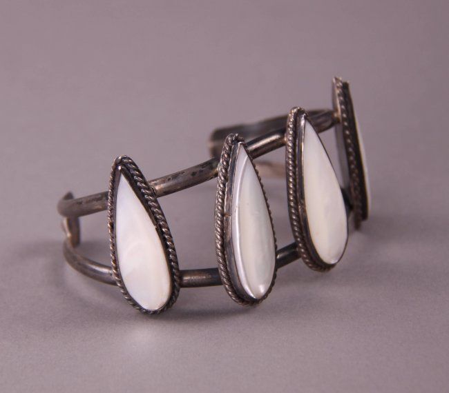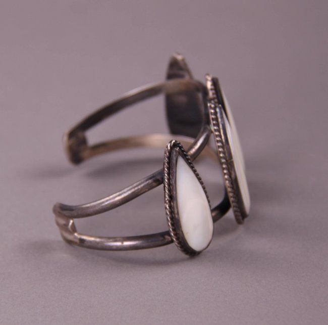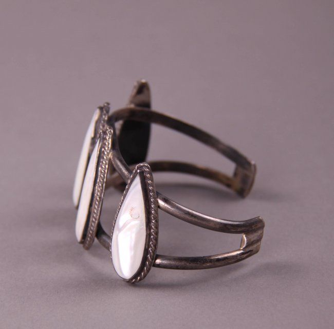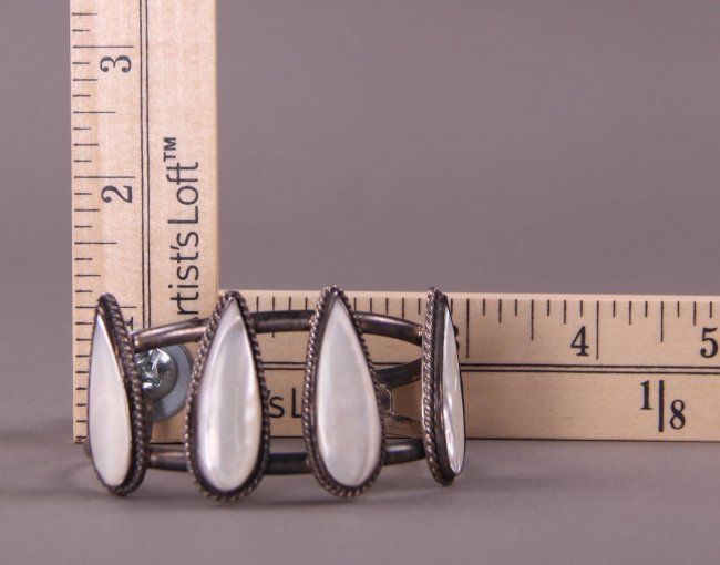 Native American Old Pawn Silver and Mother of Pearl bracelet. X-ray Silver tested. (Size: See last photo for measurement.)