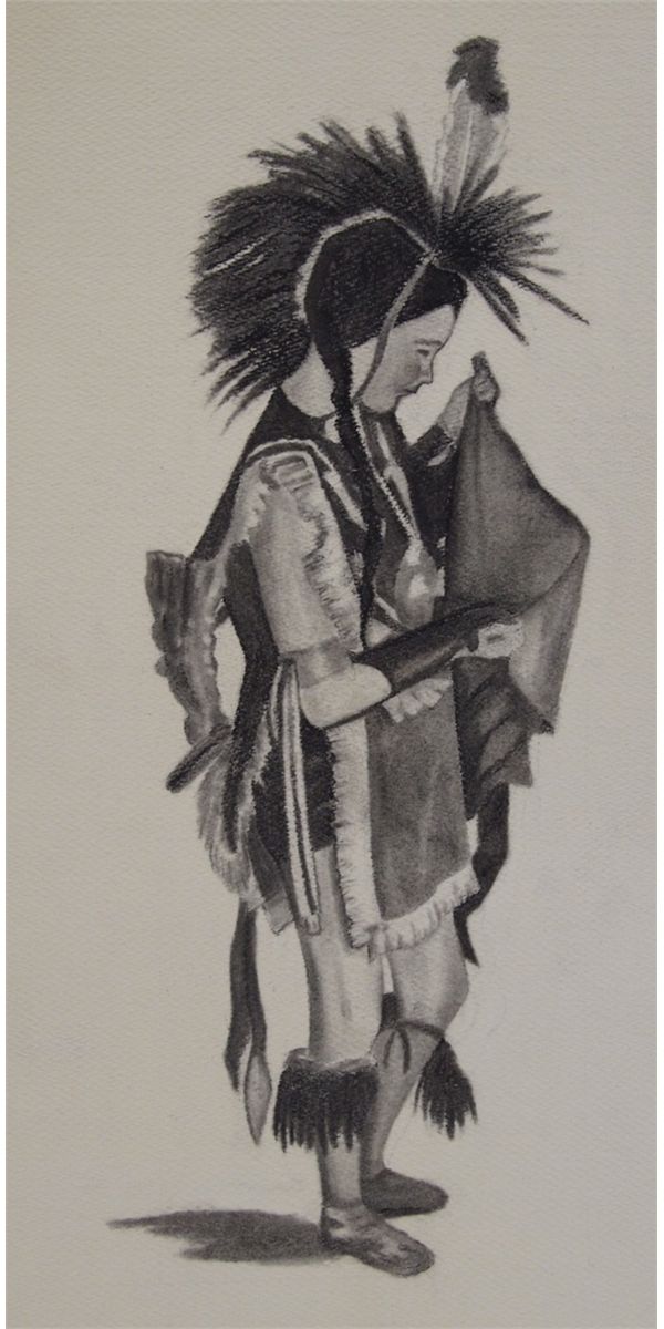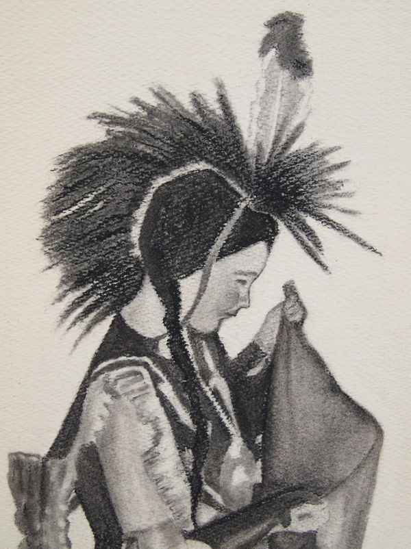 Native American Original Charcoal Painting, measures 21''H x 15''W.  Not framed or matted.