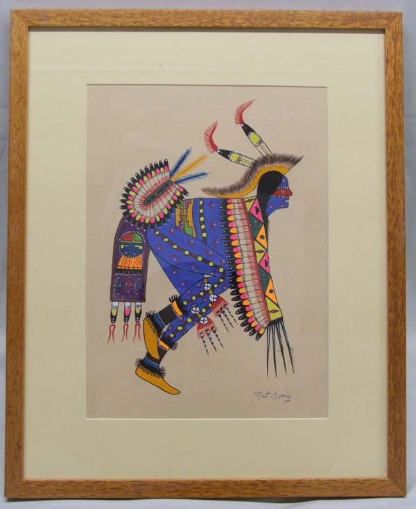 Original Tesuque Painting by Nat Coriz, matted front & back, behind glass, visual measures approx. 14 s 10''. Buyers Pay Actual Shipping and Handling Charges(see terms and conditions for more information)