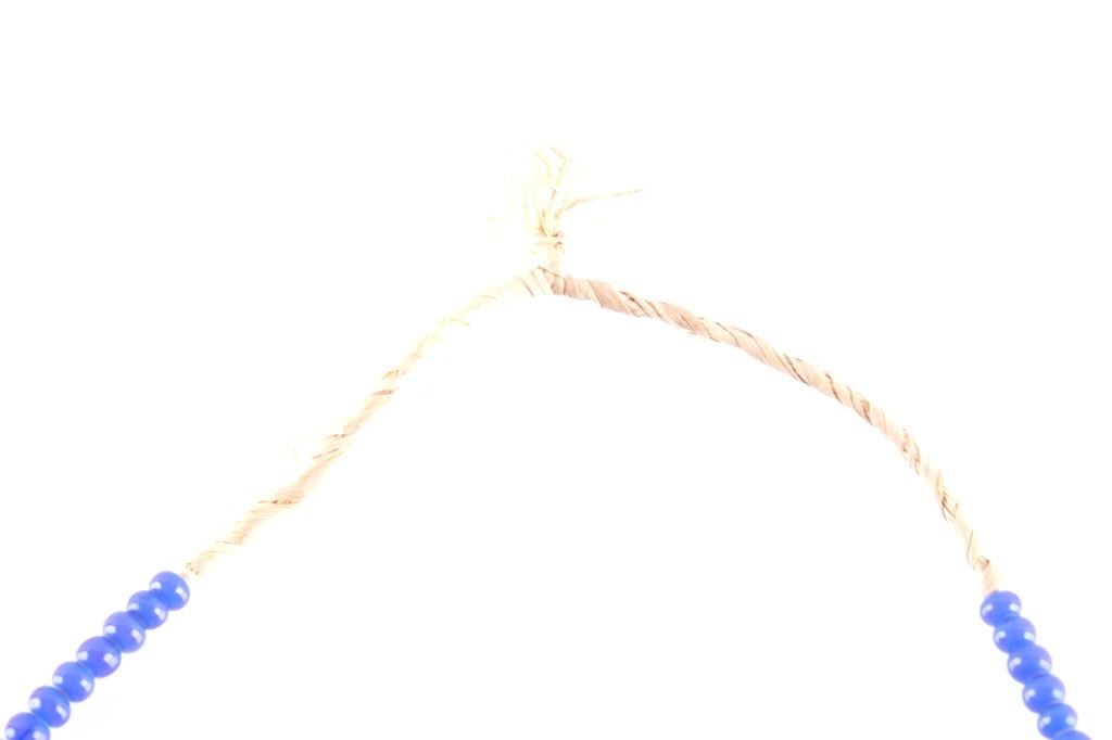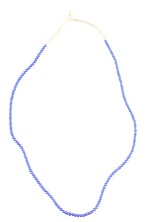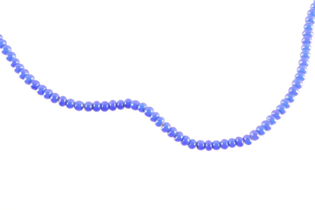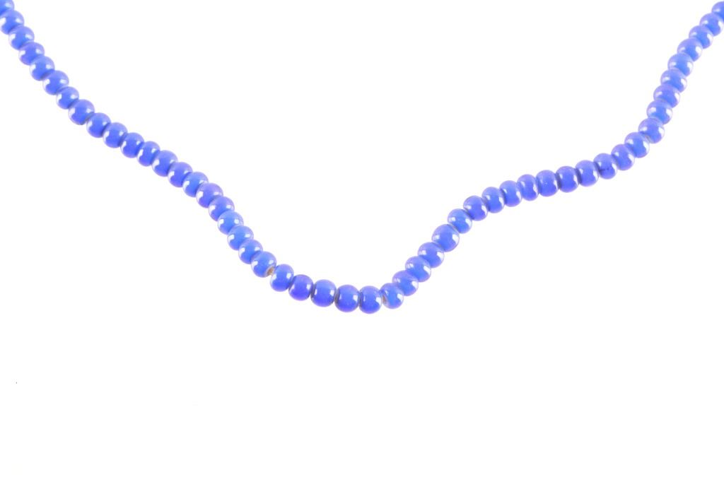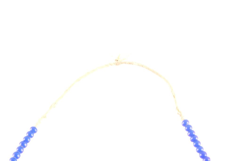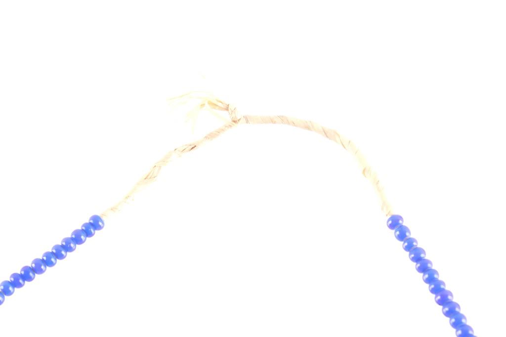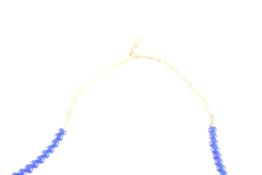 Presented in this lot are five (5) individual strands of Native American Padre Bead necklaces, Cobalt or NW Coast Blue in colour. Strung with very sturdy natural fiber, Padre beads are glass beads whose origin is traced back to ancient China. Taken to America, Africa, and India by traders during the 18th and the 19th century. Padre beads were made in a variety of colors, but blue and white were the most sought after by the Northwest Indians, but were only two of many styles and colors accepted for trade among the Native Americans. The name by which these beads have become known, 'padre' originates from the Franciscan priests (padres) who gave the beads to Native Americans for their good work and to convert them to Christianity. In the late 18th century, these beads spread rapidly in use in Southwest and Northwest America, following the trading patterns of Russian and Spanish traders. In 1778, English explorer, Captain James Cook made the earliest mention of these beads with several references to the effect that it was difficult to obtain supplies and furs from the Pacific coast Indians without this particular blue bead. These Padre Bead necklaces are in good condition, measure 12"L approximately each.