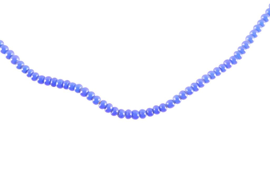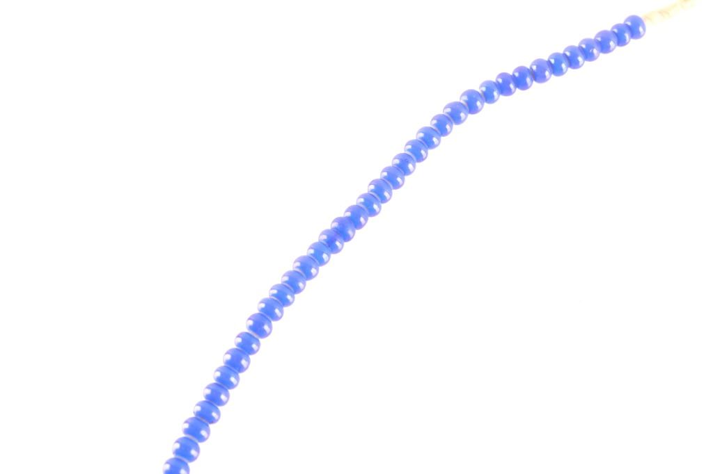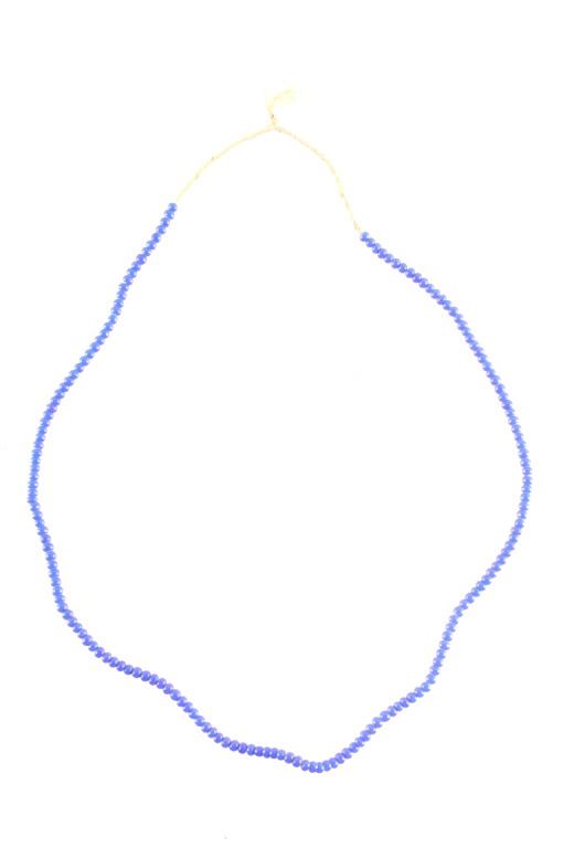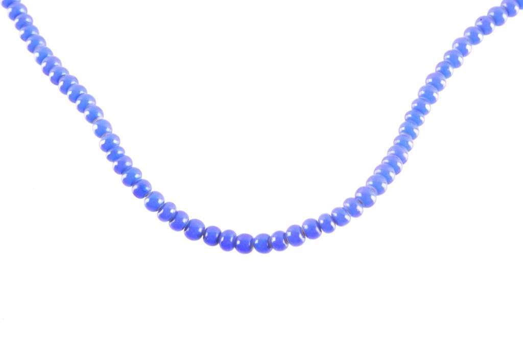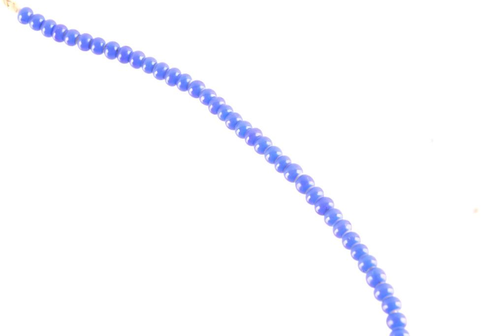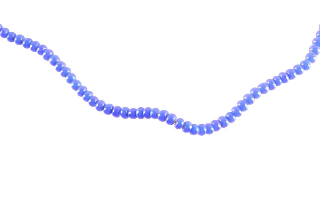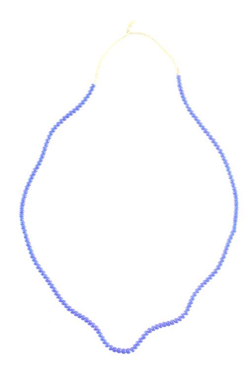 Presented in this lot are five (5) individual strands of Native American Padre Bead necklaces, Cobalt or NW Coast Blue in colour. Strung with very sturdy natural fiber, Padre beads are glass beads whose origin is traced back to ancient China. Taken to America, Africa, and India by traders during the 18th and the 19th century. Padre beads were made in a variety of colors, but blue and white were the most sought after by the Northwest Indians, but were only two of many styles and colors accepted for trade among the Native Americans. The name by which these beads have become known, 'padre' originates from the Franciscan priests (padres) who gave the beads to Native Americans for their good work and to convert them to Christianity. In the late 18th century, these beads spread rapidly in use in Southwest and Northwest America, following the trading patterns of Russian and Spanish traders. In 1778, English explorer, Captain James Cook made the earliest mention of these beads with several references to the effect that it was difficult to obtain supplies and furs from the Pacific coast Indians without this particular blue bead. These Padre Bead necklaces are in good condition, measure 12"L approximately each.