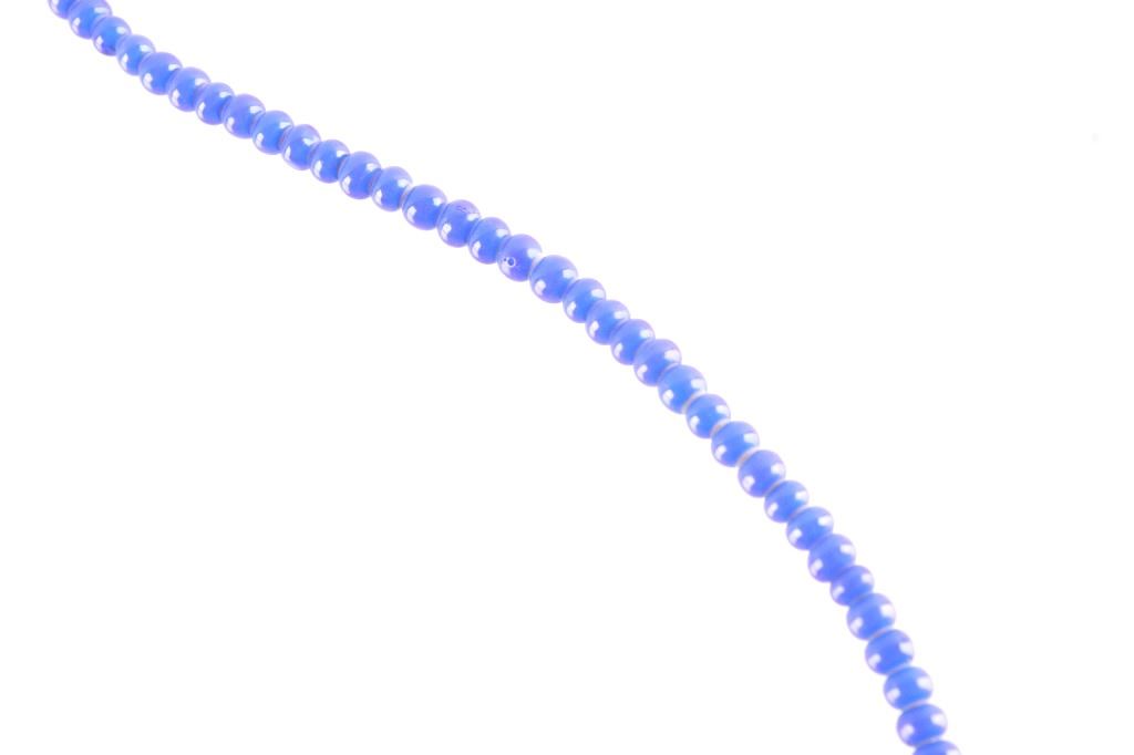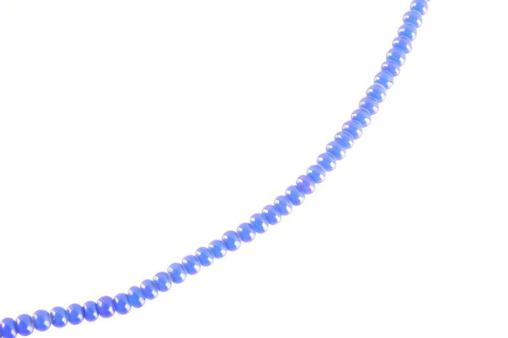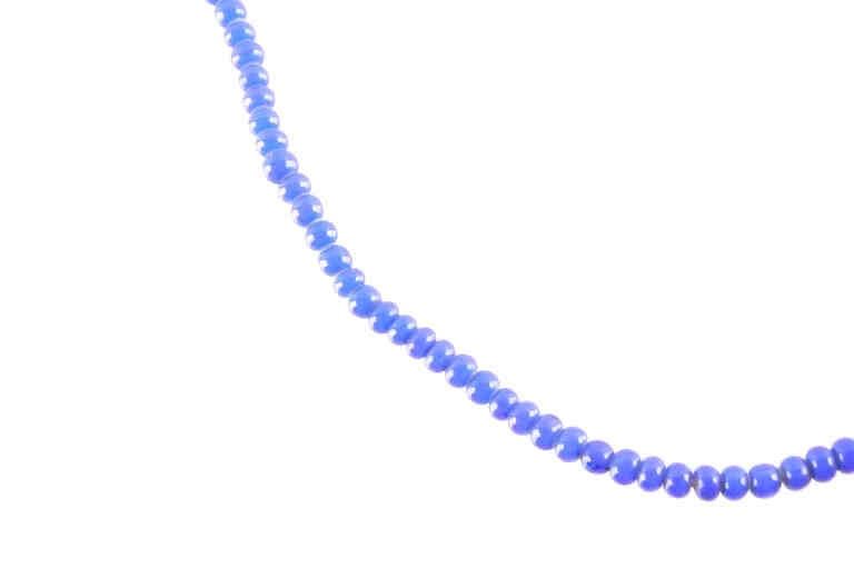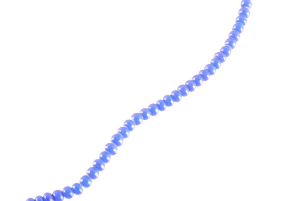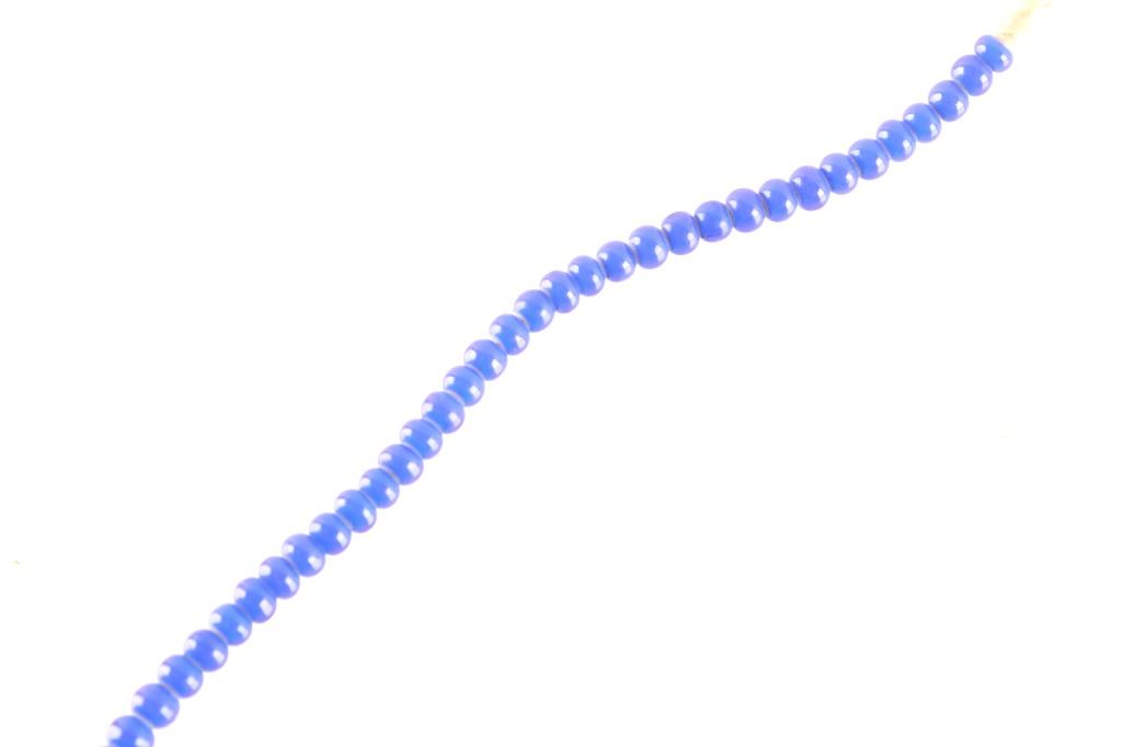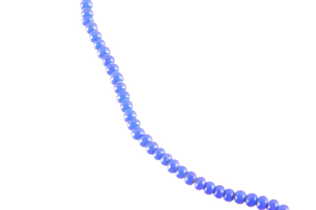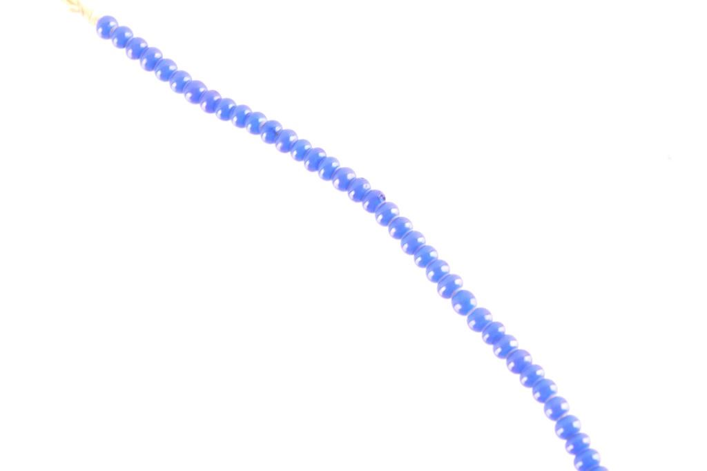 Presented in this lot are five (5) individual strands of Native American Padre Bead necklaces, Cobalt or NW Coast Blue in colour. Strung with very sturdy natural fiber, Padre beads are glass beads whose origin is traced back to ancient China. Taken to America, Africa, and India by traders during the 18th and the 19th century. Padre beads were made in a variety of colors, but blue and white were the most sought after by the Northwest Indians, but were only two of many styles and colors accepted for trade among the Native Americans. The name by which these beads have become known, 'padre' originates from the Franciscan priests (padres) who gave the beads to Native Americans for their good work and to convert them to Christianity. In the late 18th century, these beads spread rapidly in use in Southwest and Northwest America, following the trading patterns of Russian and Spanish traders. In 1778, English explorer, Captain James Cook made the earliest mention of these beads with several references to the effect that it was difficult to obtain supplies and furs from the Pacific coast Indians without this particular blue bead. These Padre Bead necklaces are in good condition, measure 12"L approximately each.