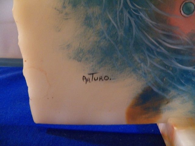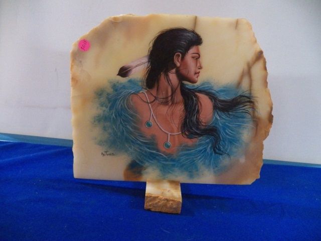 Painting of Native American on Marble signed by artist Arturo. This is a beautiful piece of art work .