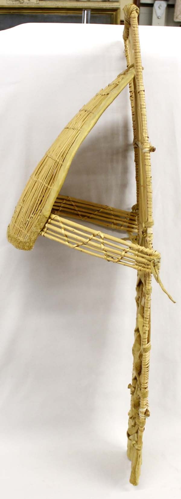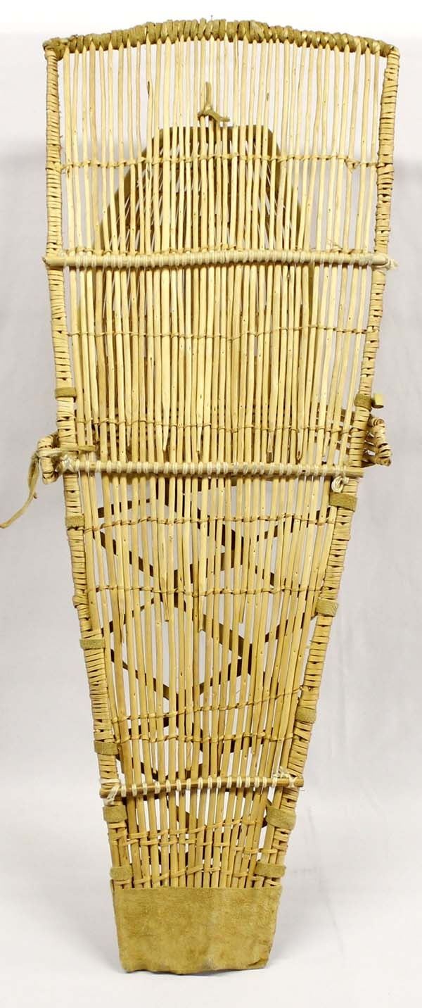 Native American Paiute Cradle Board, measures 34.5''L x 13''W x 12''H, embellished with leather