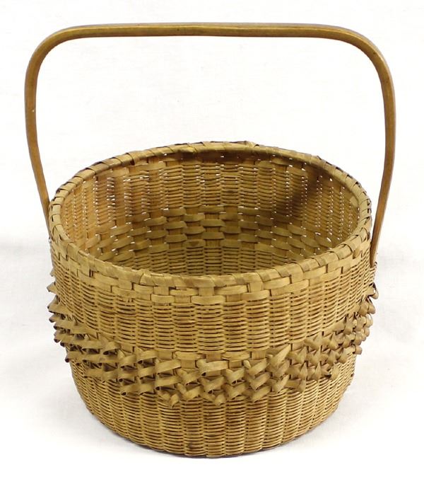 Native American Penobscot Fixed Handle Basket, measures 5'' x 8'' (without handle)