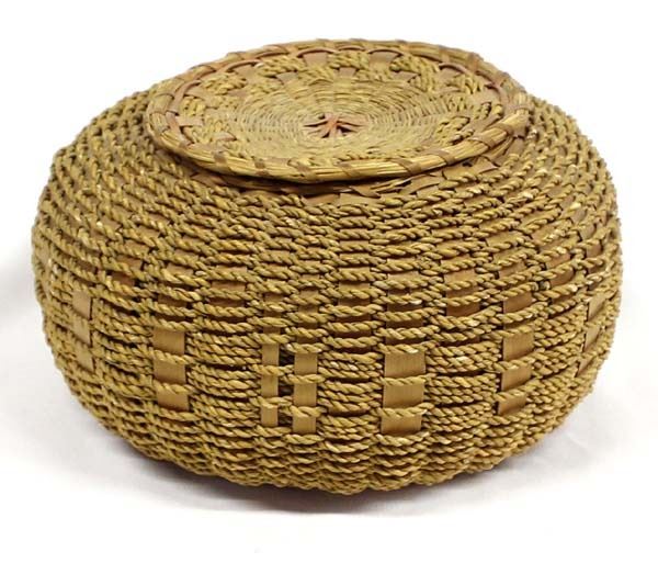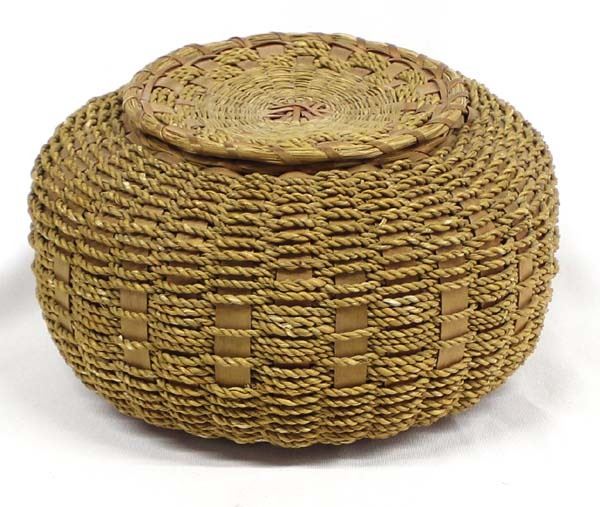 Native American Penobscot Lidded Basket, 5'' x 8''