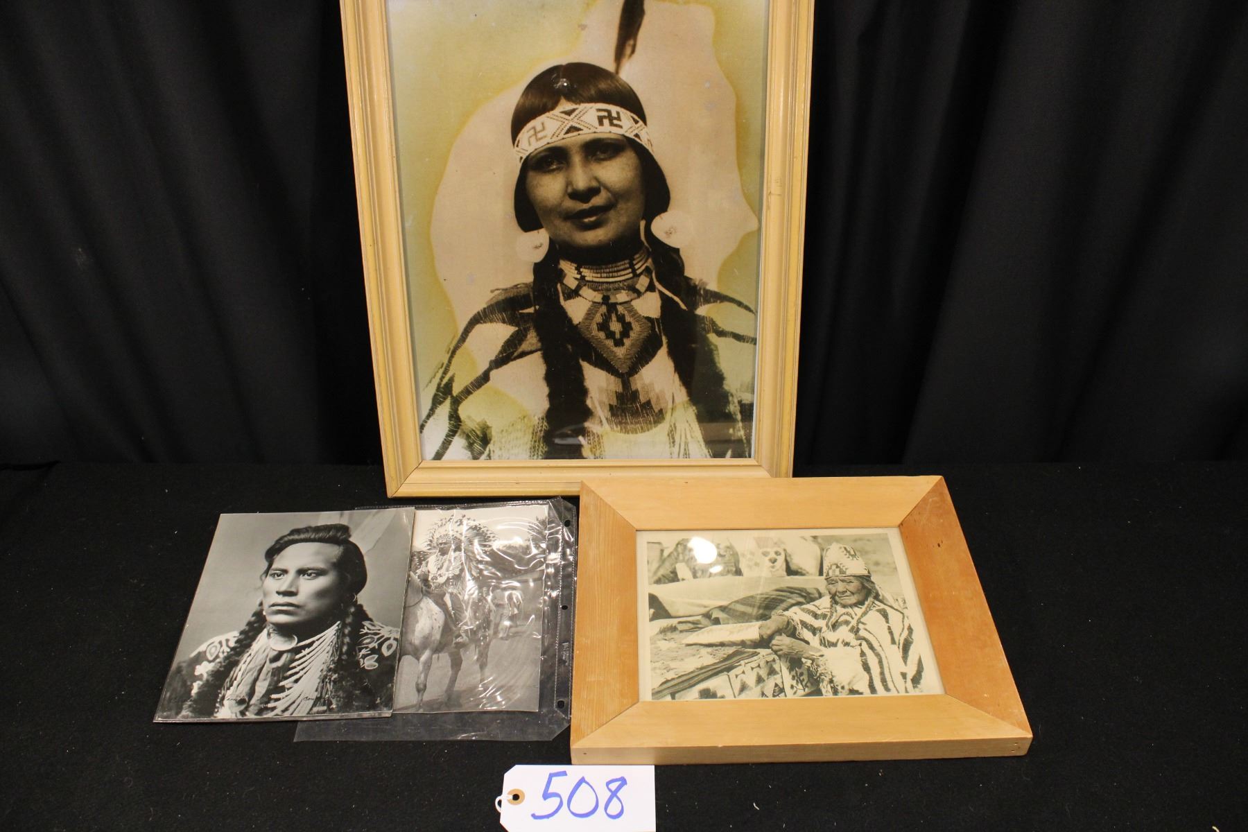 Lot of 4: Curly crow scout 10.8, Nez Pierce Chief Sam Slickpoo 10 x 9, Wah-qual-e-pumlooney 12 x 14.5 / 8 x 10, Malissa Parr 1932 Pendleton Roundup Queen 21 x 16.75/ 18 x 13.5