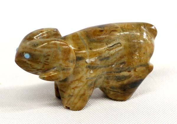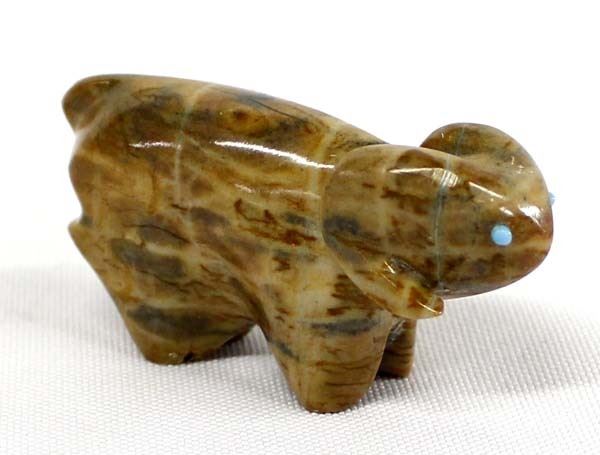 Native American Picasso Marble Ram Fetish, turquoise eyes, measures 2'' x 1''