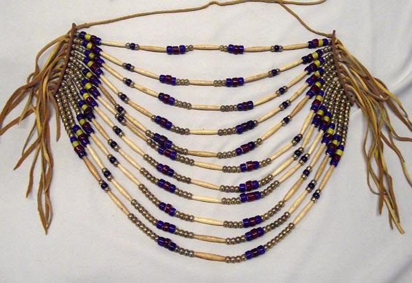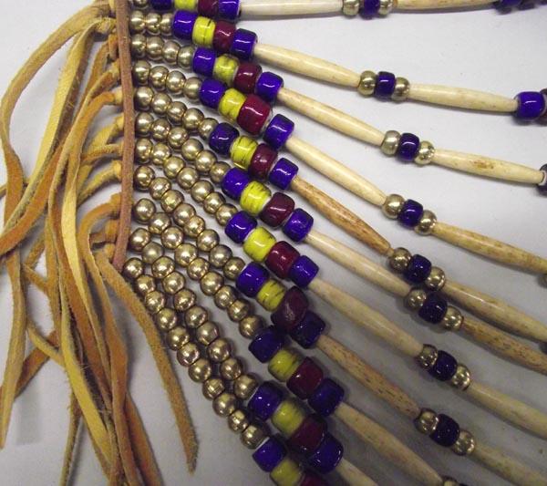 Native American Plains Bone Breast Plate. Measures approx. 21'' not including leather fringe x 3 1/2''. Buyers Pay Actual Shipping and Handling Charges(see terms and conditions for more information).